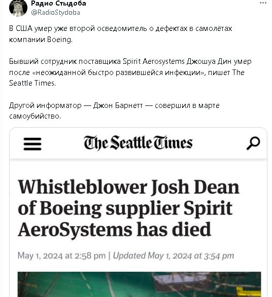 11 с боингом история на глазах у всего мира происходит и ничего… в дерьмократиях все возможно, свободные граждане засунули свои языки в жопу и усиленно не замечают происходящее. Зато про смерть придурка Навального ( к которой заранее подготовилась потенциальная вдова) вой стоял аж целую неделю.
